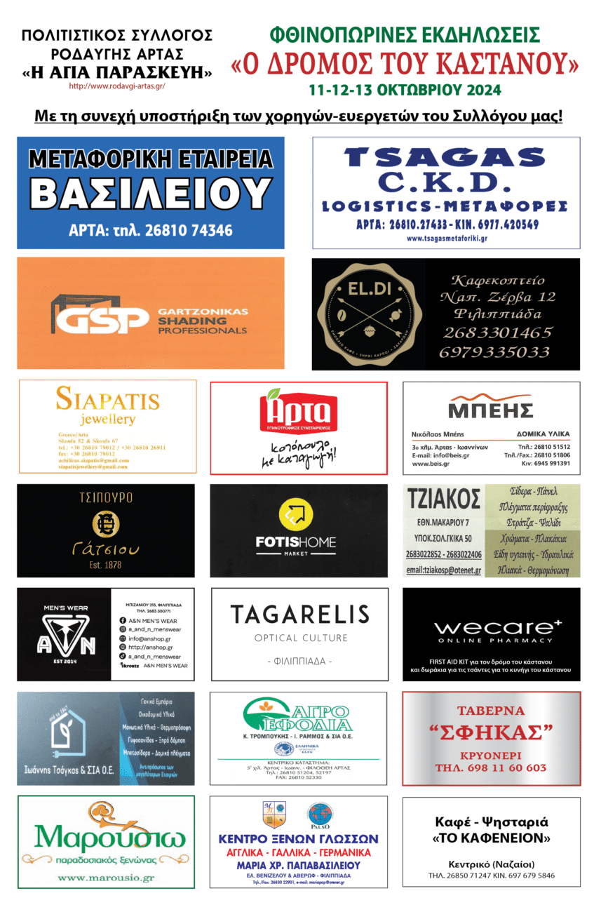 14η Γιορτή Κάστανου-2024 Ροδαυγή Άρτας – Οι Χορηγοί μας
